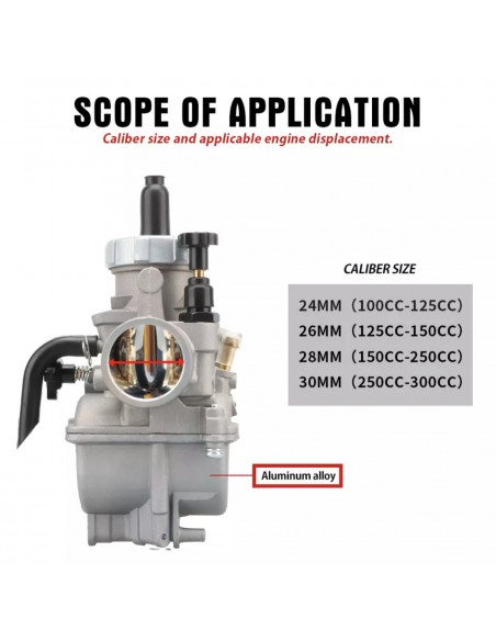 Carburateur type NIBBI PE26 PE 26 fiable et puissant ! Ce carburateur de Dirt Bike / Pit Bike possède les caractéristiques suivantes: