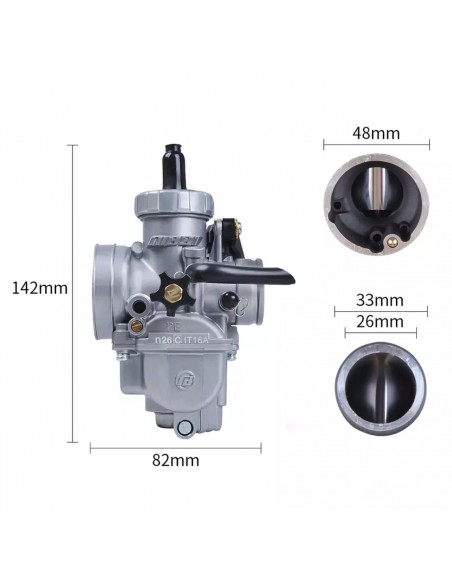 Carburateur NIBBI PE26 (26mm au boisseau) pour Dirtbike, Pitbike de 125cc à 150cc