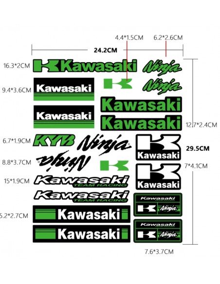 Planche d'autocollants / Stickers Kawasaki haute qualité (29 x 24 cms) pour Moto, Quad, ATV, Dirtbike, Pitbike, Motocross, Kart, Buggy