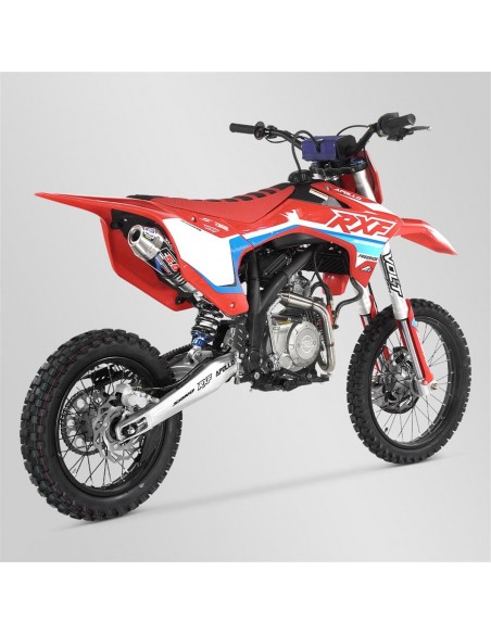 Dirt Bike / Pit Bike / Minicross 150cc YX 4 temps à démarrage électrique ou kick à boîte manuelle de marque APOLLO RFZ / RXF. C’est une vraie Dirt Bike, équipée d’un moteur 150cc 4T FIABLE & ROBUSTE !! Cette moto est idéal pour les enfants à partir de 14 ans (hauteur de selle 89 cms) !