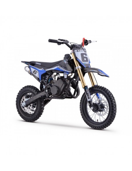 Dirt Bike / Pit Bike 65cc 2 temps Automatique de marque KEROX modèle STORM 65cc est une évolution de la Pocket Bike cross 49cc. C’est une alternative moins onéreuse à la Dirt Bike / Pitbike 4 temps ! Cette moto est idéale pour les enfants à partir de 7/8 ans (hauteur de selle 63 cms) !