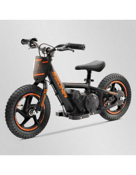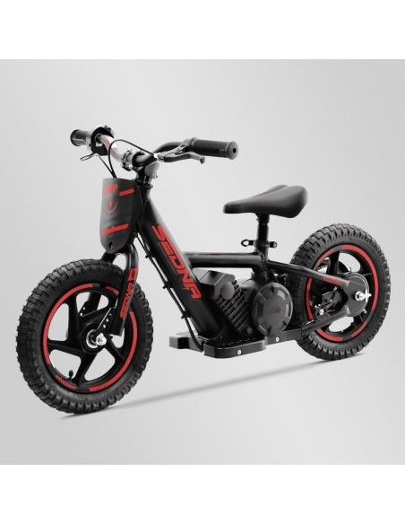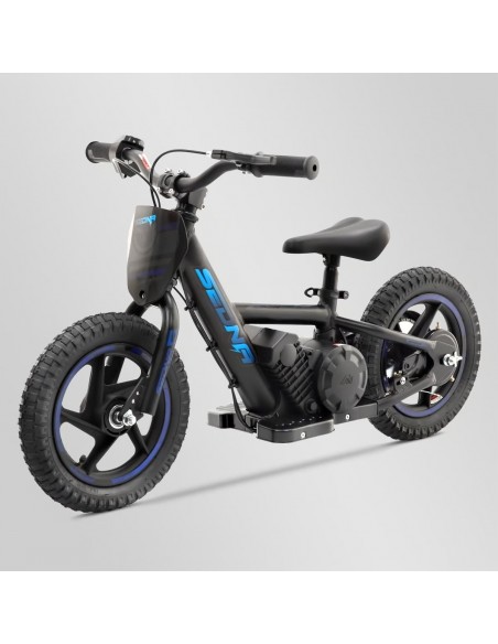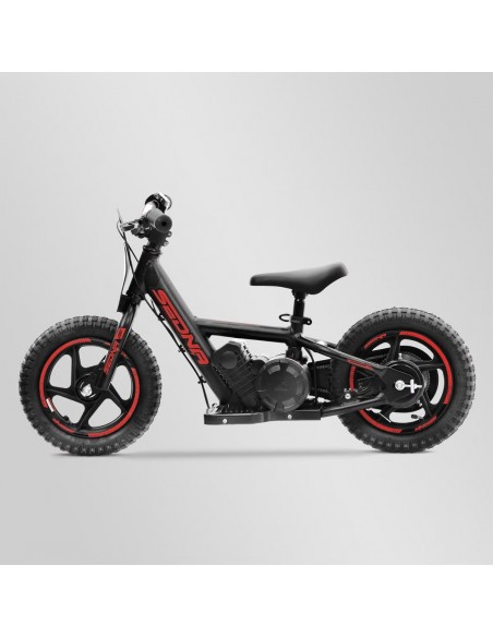 Draisienne électrique 24V 100W APOLLO MOTORS modèle APOLLO SANO SEDNA SHADOW 12" - 12 Pouces équipée de roues 12 Pouces. Cette draisienne tout terrain / cross est équipée d’un moteur électrique qui ravira les grands comme les petits !
