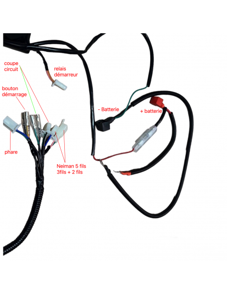 Ce faisceau électrique est composé de:- Deux cosses pour le boitier CDI à double cosses (voir rubrique associée)