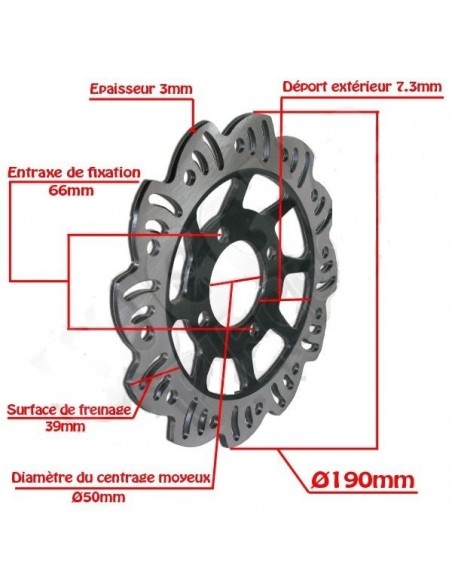 Disque de frein type Wave à déport de diamètre 190mm pour Dirtbike & Pitbike