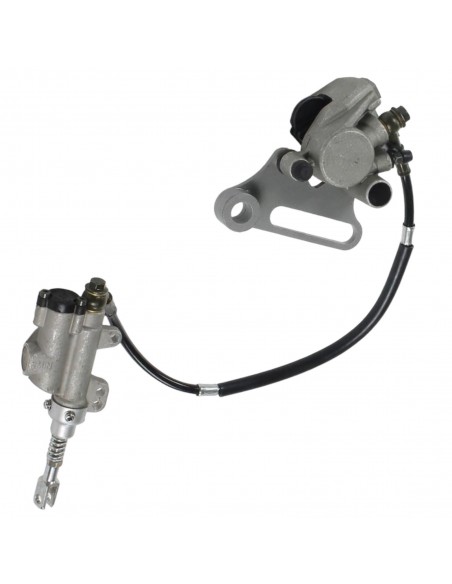 Frein hydraulique arrière monopiston complet pour Dirt Bike / Pit bike de 50 à 250cc livré prêt à l'emploi et déjà purgé ! Il ne vous reste plus qu'à l'installer sur votre mini ! Ce kit est composé: