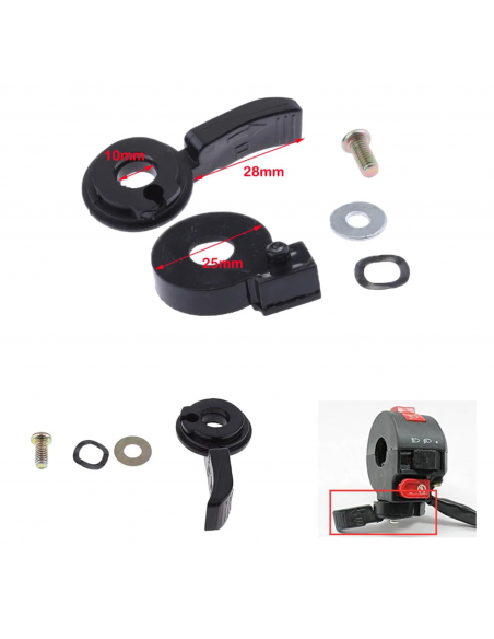 Gâchette / Manette / Commande complète de starter pour câble de starter se fixant sur le commodo gauche, adaptable sur quad, ATV de cylindrée de 50 à 125cc à moteur 4 temps quelque soit la marque et le modèle de la machine: bigfoot, puma, orion, carbon, carbone, panthera, speedy, nitro, hummer, hammer, bazooka, polaris, razor, sniper, raptor, razor, TNT, ninja motors, nitro motors, tao motors, xtrem motors...