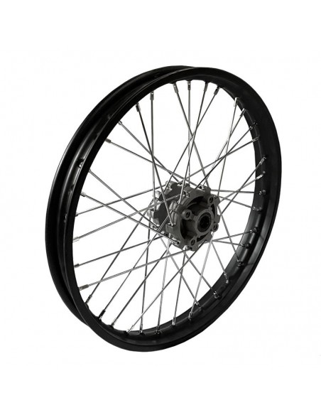Jante 19 Pouces Avant RENFORCÉE pour Dirtbike / PitBike (livrée avec ses roulements) de 150cc, 200cc, 250cc et 300cc à moteur vertical avec moyeu en acier renforcé et cerclage en acier. Convient pour: