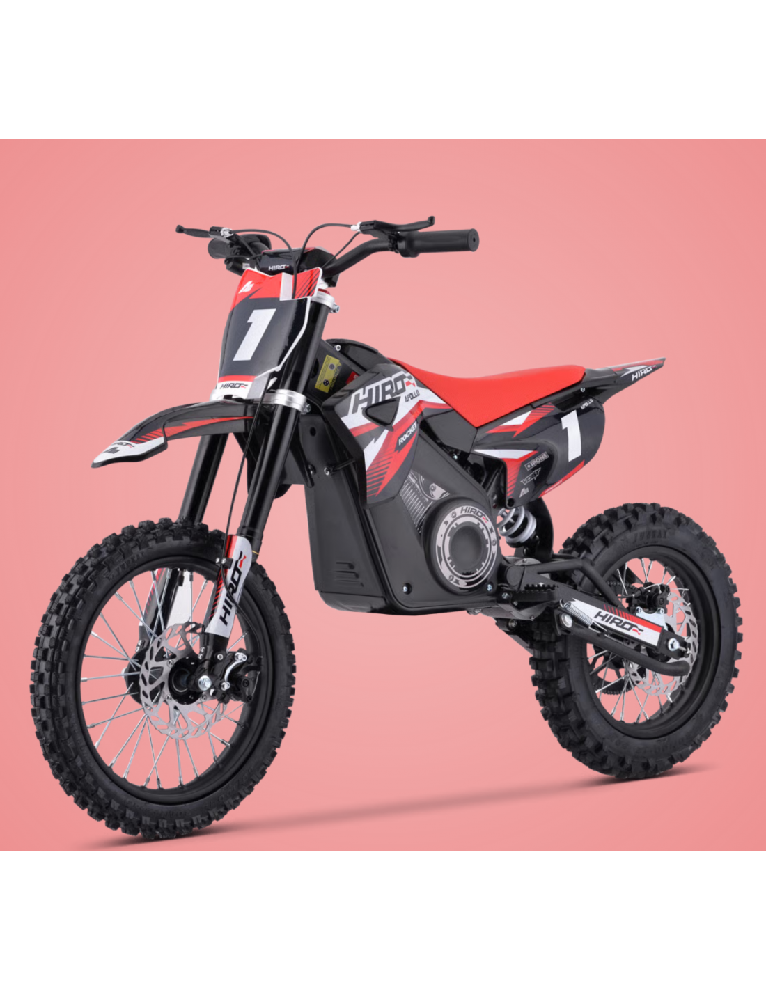 Mini Moto Dirt Bike Pit Bike APOLLO HIRO ROCKET spécial enfant équipé d'une roue 14 Pouces à l'avant et 12 Pouces à l'arrière (14 / 12). Cette dirtbike électrique, 48V 1600W à moteur brushless, grâce à de nombreux avantages séduira parents comme enfants ! MODÈLE HAUT DE GAMME DE CHEZ APOLLO !!!! Importateur Français distributeur APOLLO MOTORS RXF / RFZ avec un excellent SAV / dispo pièces !**** ATTENTION CE MODÈLE EST PLUS GRAND ET PLUS PUISSANT QU'UNE POCKET BIKE / A PARTIR DE 6 ANS !!! **** Cette moto permettra à l’enfant (dès 6-8 ans / Hauteur de selle 68 cms) de découvrir le sport mécanique fabuleux qu'est la moto, sans se ruiner et tout en gardant le meilleur rapport qualité prix du marché ! De plus cette moto respecte une règle importante: Économique, Écologique et Silencieuse (0 bruit) ! De plus les modèles électriques ne nécessitent quasiment aucun entretien ! Cette mini moto est idéale et peut être utilisée dans votre jardin sans que vos voisins ne soient dérangés !!! Les + de la marque APOLLO MOTORS :- Partie cycle de dirt bike / Pit Bike donc beaucoup plus robuste qu'une pocket bike !- Roues avant et arrière racing à rayons (comme sur les Dirt Bike)- Châssis et Bras oscillant renforcé !- Colonne de direction monté sur roulement (aucun jeu possible)- Fourche inversée pour plus de confort et de robustesse - Amortisseur arrière de haute qualité réglable et moins dur !- Vitesse réglable de 7 à 35 km/h (Vitesse MAX 35 Km/h) **- Temps de réponse de la poignée réglable de 0,2 à 1s **** Ces paramètres sont réglables grâce aux molettes situées sous un cache verouillable à la place du bouchon de réservoirVous n'aurez pas de mauvaises surprises comparé à des modèles similaires ne possédant les améliorations importantes de la marque APOLLO !! - MOTEUR