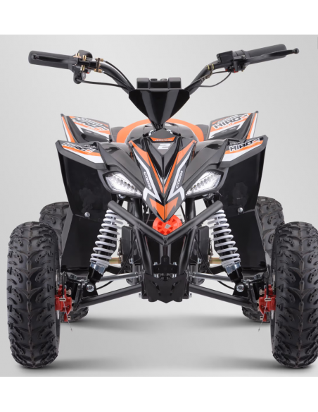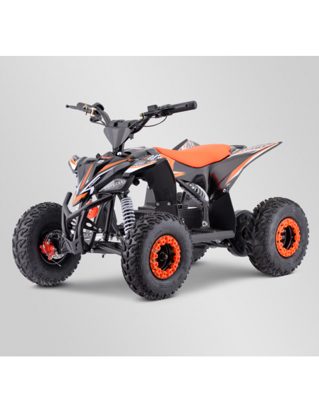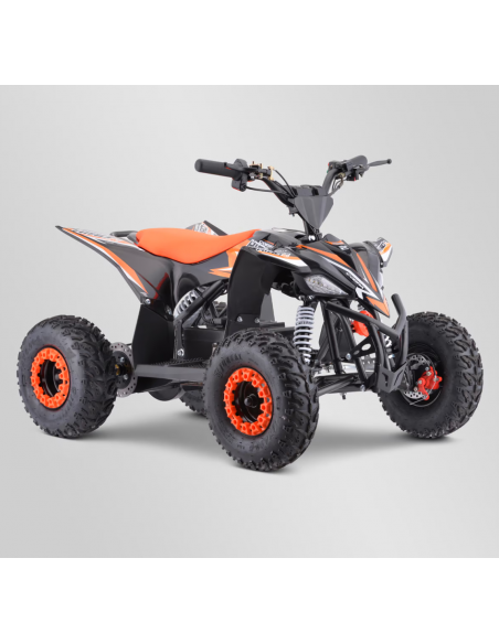 Quad APOLLO MOTORS HIRO COBRA BW6 (Mini ATV) spécial enfant équipé de roue 6 Pouces. Ce quad électrique, 36V 1000W, grâce à de nombreux avantages séduira parents comme enfants ! MODELE HAUT DE GAMME DE CHEZ APOLLO MOTORS !!!! Importateur Français distributeur APOLLO avec un excellent SAV / dispo pièces !**** ATTENTION CE MODÈLE EST PLUS GRAND ET PLUS PUISSANT QU'UN POCKET QUAD / A PARTIR DE 6 ANS !!! **** Ce quad permettra à l’enfant (dès 6 ans) de découvrir le sport mécanique fabuleux qu'est le quad, sans se ruiner et tout en gardant le meilleur rapport qualité prix du marché ! De plus ce quad respecte une règle importante: Economique, Ecologique et Silencieux (0 bruit) ! De plus les modèles électriques ne nécessitent quasiment aucun entretien ! Ce mini quad est idéal et peut être utilisé dans votre jardin sans que vos voisins ne soient dérangés !!! Les + de la marque APOLLO MOTORS :- Partie cycle de quad 110 donc beaucoup plus robuste qu'un pocket quad !- Frein arrière hydraulique comme sur les quads 110 / 125cc - Train arrière renforcé !- Colonne de direction monté sur bague (aucun jeu possible)- Biellettes de direction renforcées (beaucoup moins de jeu et d'usure dans le temps)- Amortisseur avant / arrière réglable et moins dur !- Vitesse réglable de 7 à 30 km/h (Vitesse MAX environ 30 Km/h) **- Temps de réponse de la poignée réglable de 0,2 à 1s **** Ces paramètres sont réglables grâce aux molettes situées sur la machine visible sur la dernière photo !Vous n'aurez pas de mauvaises surprises comparé à des modèles similaires ne possédant les améliorations importantes de la marque APOLLO MOTORS !! - MOTEUR