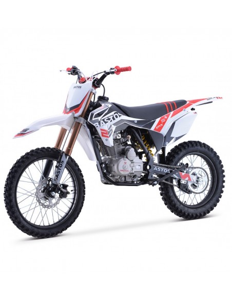 Motocross / Dirt Bike / Pit Bike 250cc 4 temps à boite manuelle de marque BASTOS BIKE n’a rien à voir avec une Dirt Bike bas de gamme. C’est une vraie Motocross, Dirt Bike, équipée d’un moteur 250cc 4T FIABLE & ROBUSTE !! Cette moto est idéale pour les enfants à partir de 14/16 ans (hauteur de selle 85 cms) !