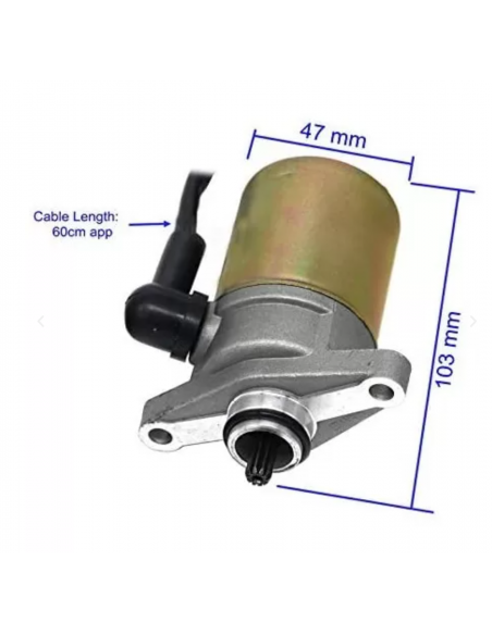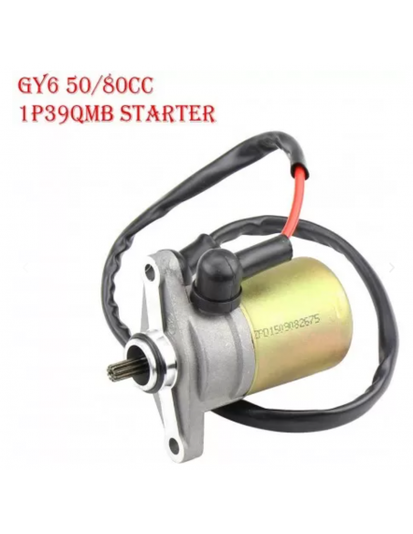 Démarreur 10 dents / 2 points de fixations pour moteur 4 temps horizontal automatique type GY6 de 50cc, 80cc de Scooter ATV / Quad quelque soit la marque et le modèle de la machine et possédant les caractéristiques suivantes: