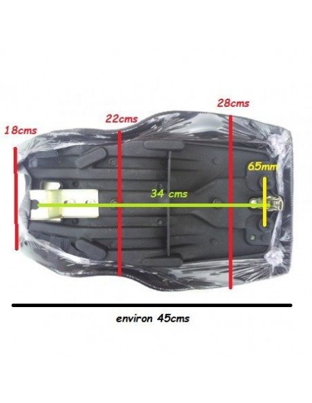 Selle pour quad enfant, mini quad, quad 50,70, 107,110 et 125cc de type bazooka adaptable et d'origine sur les quads bazooka, bazoo, toronto, bazou, baroudeur, Apollo Tiger, Kerox Bazooka (voir photos) et possédant les caractéristiques suivantes: