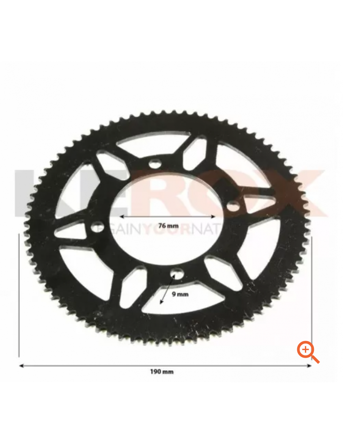 Couronne arrière (∅19cms) / 76 dents / 219H pour Mini dirt bike, Moto enfant électrique 36V, 1000W, 1200W ou 48V 1300 1600W 1800W type Apollo Hiro RXF Rocket, Diamond SX, Kerox E-Storm, LBQ E-Blast, Nitro Motors Tiger, Diamond SXn LMR XSS, Dino...