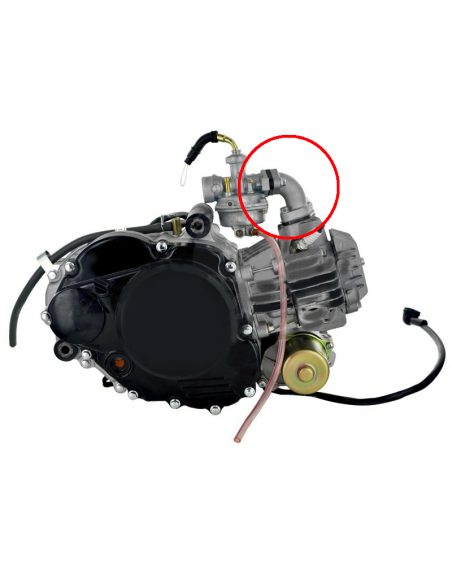 Pipe d'admission Coudée (Diamètre intérieur 17mm) pour Dirt bike, Pit bike, Dax, Monkey, PBR, Quad à moteur HORIZONTAL de 50cc possédant les caractéristiques suivantes :