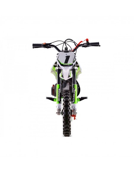 Pocket Bike cross 50cc KEROX MICO racing (réplique de motocross) 50cc XL équipée de roue 10 Pouces. Cette mini dirt bike cross est équipée d’un moteur automatique qui ravira les grands comme les petits ! MODELE HAUT DE GAMME DE CHEZ KEROX !!!! Importateur Francais distributeur BASTOS BIKE avec un excellent SAV / dispo pièces ! Sa vitesse bridable dès 5 km/h et son coupe circuit type jet ski permettra de mettre pilote et parents en toute sécurité ! Cette moto permettra à l’enfant (dès 5 ans) de découvrir le sport mécanique fabuleux qu'est la moto, sans se ruiner tout en gardant le meilleur rapport qualité prix du marché ! Elle est équipée d'un coupe circuit en cas de chute ! Les + de la marque KEROX:- Colonne de direction monté sur roulement (aucun jeu possible)- Silent bloc en teflon (beaucoup moins de jeu et d'usure dans le temps) - Nouveau guidon Fat bar moins large et mieux adapté aux plus jeunes- Amortisseur arrière réglable et moins dur ! De plus avec ses nombreuses améliorations (voir photos), cette moto s'est fiabilisée avec le temps: lanceur renforcé, embrayage renforcé, cales pieds renforcés, fourche inversée, guidon aluminium, freins à disques avant et arrière, chaine renforcée !!! - MOTEUR