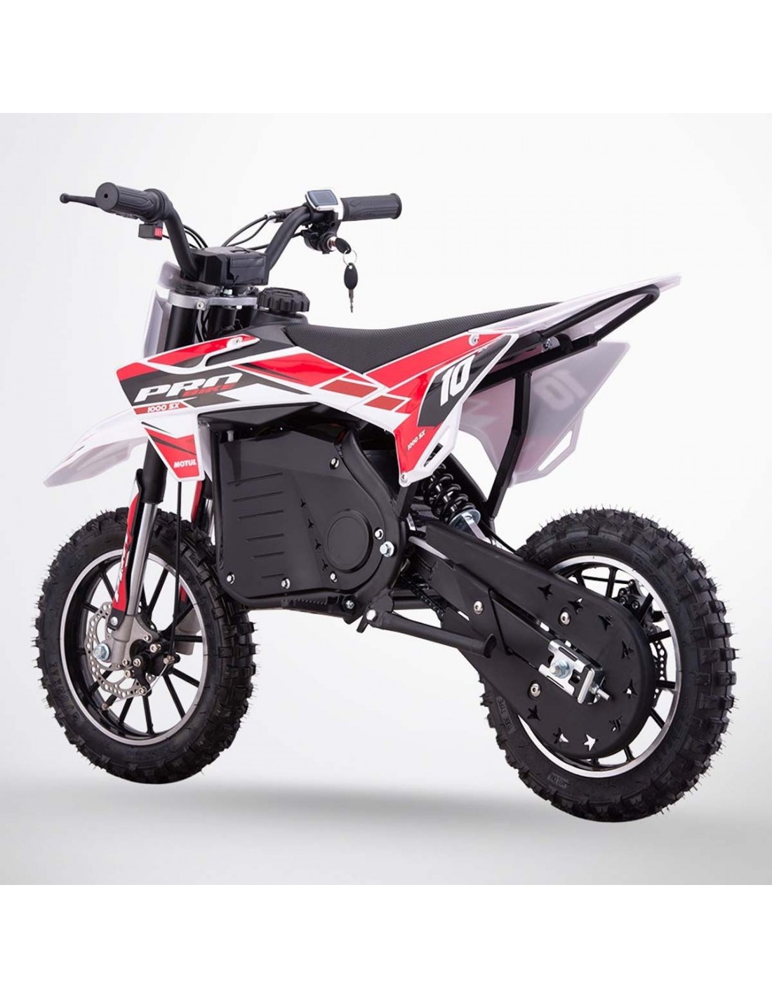 Pocket Bike cross électrique 36V 1000W PRO BIKE 1000 SX racing (réplique de motocross) XL équipée de roue 10 Pouces. Cette mini dirt bike cross est équipée d’un moteur électrique qui ravira les grands comme les petits !