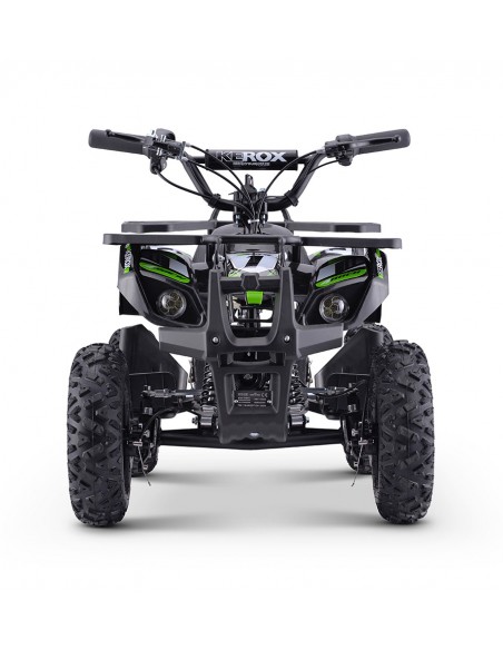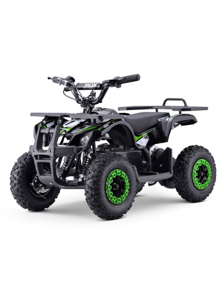 Pocket Quad / Mini Quad enfant KEROX E-4ROCK BW6 (Mini ATV) spécial enfant équipé de roue 6 Pouces. Ce quad électrique, 36V 800W, grâce à de nombreux avantages séduira parents comme enfants ! MODELE HAUT DE GAMME DE CHEZ KEROX !!!! Importateur Francais distributeur BASTOS BIKE / QUAD KEROX avec un excellent SAV / dispo pièces ! Sa vitesse bridable 3 positions dès 7 km/h permettra de mettre pilote et parents en toute sécurité ! Elle se bride avec une clef extractible rendant ainsi la bride inviolable ! Ce quad permettra à l’enfant (dès 3 ans) de découvrir le sport mécanique fabuleux qu'est le quad, sans se ruiner et tout en gardant le meilleur rapport qualité prix du marché ! De plus ce quad respecte une règle importante: Economique, Ecologique et Silencieux (0 bruit) ! De plus les modèles électriques ne nécessitent quasiment aucun entretien ! Ce mini quad est idéal et peut être utilisé dans votre jardin sans que vos voisins ne soient dérangés !!! De plus avec ses nombreuses améliorations (voir photos), ce quad s'est fiabilisé avec le temps: biellettes renforcées, guidon aluminium, freins à disques avant (double) et arrière, chaine renforcée !!! Les + de la marque KEROX:- Colonne de direction monté sur bague (aucun jeu possible)- Biellettes de direction serties et inversées (beaucoup moins de jeu et d'usure dans le temps)- Fusée de train avant monté sur roulements (pas d'usure ni de jeu comparé à du plastique)- Nouveau guidon moins large et mieux adapté aux plus jeunes- Amortisseur avant / arrière réglable et moins dur !- Vitesse bridable 3 positions: Vitesse 1 = 7km/h, Vitesse 2 = 15km/h, Vitesse 3 = 25 km/h (Vitesse MAX) Vous n'aurez pas de mauvaises surprises comparé à des modèles similaires ne possédant les améliorations importantes de la marque KEROX !! - MOTEUR