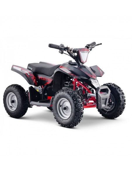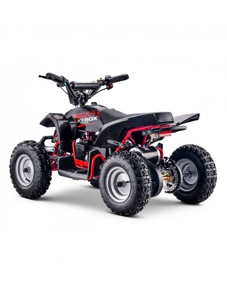 Pocket Quad / Mini Quad enfant KEROX E-ROCK BW6 (Mini ATV) spécial enfant équipé de roue 6 Pouces. Ce quad électrique, 36V 800W, grâce à de nombreux avantages séduira parents comme enfants ! MODELE HAUT DE GAMME DE CHEZ KEROX !!!! Importateur Francais distributeur BASTOS BIKE / QUAD KEROX avec un excellent SAV / dispo pièces ! Sa vitesse bridable 3 positions dès 7 km/h permettra de mettre pilote et parents en toute sécurité ! Elle se bride avec une clef extractible rendant ainsi la bride inviolable ! Ce quad permettra à l’enfant (dès 3 ans) de découvrir le sport mécanique fabuleux qu'est le quad, sans se ruiner et tout en gardant le meilleur rapport qualité prix du marché ! De plus ce quad respecte une règle importante: Economique, Ecologique et Silencieux (0 bruit) ! De plus les modèles électriques ne nécessitent quasiment aucun entretien ! Ce mini quad est idéal et peut être utilisé dans votre jardin sans que vos voisins ne soient dérangés !!! De plus avec ses nombreuses améliorations (voir photos), ce quad s'est fiabilisé avec le temps: biellettes renforcées, guidon aluminium, freins à disques avant (double) et arrière, chaine renforcée !!! Les + de la marque KEROX:- Colonne de direction monté sur bague (aucun jeu possible)- Biellettes de direction serties et inversées (beaucoup moins de jeu et d'usure dans le temps)- Fusée de train avant monté sur roulements (pas d'usure ni de jeu comparé à du plastique)- Nouveau guidon moins large et mieux adapté aux plus jeunes- Amortisseur avant / arrière réglable et moins dur !- Vitesse bridable 3 positions: Vitesse 1 = 7km/h, Vitesse 2 = 15km/h, Vitesse 3 = 25 km/h (Vitesse MAX) Vous n'aurez pas de mauvaises surprises comparé à des modèles similaires ne possédant les améliorations importantes de la marque KEROX !! - MOTEUR