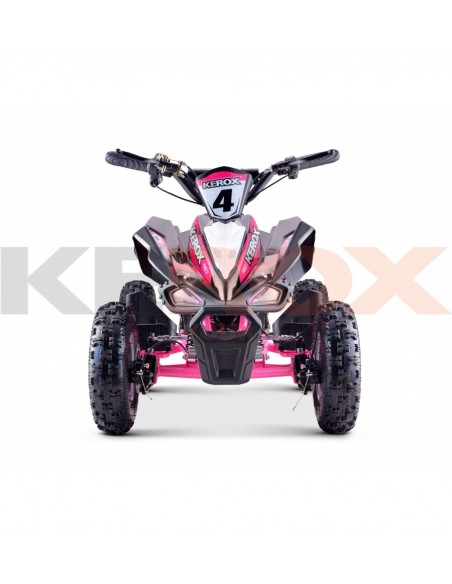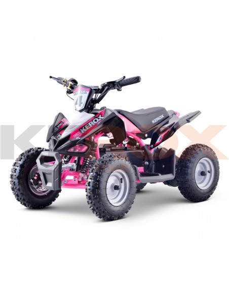 Pocket Quad KEROX E-ROCK BW6 (Mini ATV) spécial enfant équipé de roue 6 Pouces. Ce quad électrique, 36V 800W, grâce à de nombreux avantages séduira parents comme enfants ! MODELE HAUT DE GAMME DE CHEZ KEROX !!!! Importateur Francais distributeur BASTOS BIKE avec un excellent SAV / dispo pièces ! Sa vitesse bridable 3 positions dès 7 km/h permettra de mettre pilote et parents en toute sécurité ! Elle se bride avec une clef extractible rendant ainsi la bride inviolable ! Ce quad permettra à l’enfant (dès 3 ans) de découvrir le sport mécanique fabuleux qu'est le quad, sans se ruiner et tout en gardant le meilleur rapport qualité prix du marché ! De plus ce quad respecte une règle importante: Economique, Ecologique et Silencieux (0 bruit) ! De plus les modèles electriques ne nécéssitent quasiment aucun entretien ! Ce mini quad est idéal et peut être utilisé dans votre jardin sans que vos voisins ne soient dérangés !!! De plus avec ses nombreuses améliorations (voir photos), ce quad s'est fiabilisé avec le temps: biellettes renforcées, guidon aluminium, freins à disques avant (double) et arrière, chaine renforcée !!! Les + de la marque KEROX:- Colonne de direction monté sur bague (aucun jeu possible)- Biellettes de direction serties et inversées (beaucoup moins de jeu et d'usure dans le temps)- Fusée de train avant monté sur roulements (pas d'usure ni de jeu comparé à du plastique)- Nouveau guidon moins large et mieux adapté aux plus jeunes- Amortisseur avant / arrière réglable et moins dur !- Vitesse bridable 3 positions: Vitesse 1 = 7km/h, Vitesse 2 = 15km/h, Vitesse 3 = 25 km/h (Vitesse MAX) Vous n'aurez pas de mauvaises surprises comparé à des modèles similaires ne possédant les améliorations importantes de la marque KEROX !! - MOTEUR