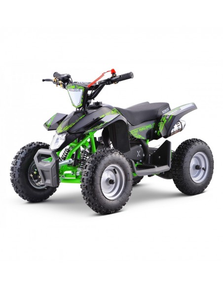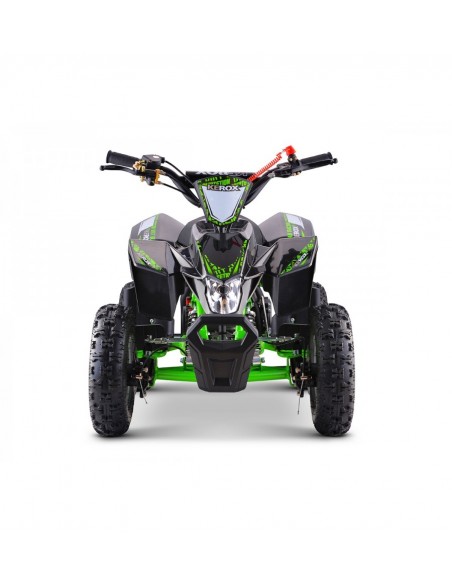 Pocket Quad KEROX ROCK BW6 (Mini ATV) équipé de roue 6 Pouces. Ce quad grâce à de nombreux avantages séduira parents comme enfants ! MODELE HAUT DE GAMME DE CHEZ KEROX !!!! Importateur Francais distributeur BASTOS BIKE avec un excellent SAV / dispo pièces ! Sa vitesse bridable dès 5 km/h et son coupe circuit type jet ski permettra de mettre pilote et parents en toute sécurité ! Ce quad permettra à l’enfant (dès 3/4 ans) de découvrir le sport mécanique fabuleux qu'est le quad, sans se ruiner et tout en gardant le meilleur rapport qualité prix du marché ! De plus avec ses nombreuses améliorations (voir photos), ce quad s'est fiabilisé avec le temps: lanceur aluminium renforcé, embrayage renforcé, biellettes renforcées, guidon aluminium, freins à disques avant (double) et arrière, chaine renforcée !!! Les + de la marque KEROX:- Colonne de direction monté sur bague (aucun jeu possible)- Biellettes de direction serties et inversées (beaucoup moins de jeu et d'usure dans le temps)- Fusée de train avant monté sur roulements (pas d'usure ni de jeu comparé à du plastique)- Nouveau guidon moins large et mieux adapté aux plus jeunes- Amortisseur avant / arrière réglable et moins dur ! - MOTEUR