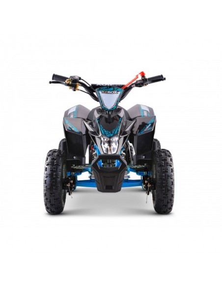 Pocket Quad KEROX ROCK BW6 (Mini ATV) équipé de roue 6 Pouces. Ce quad grâce à de nombreux avantages séduira parents comme enfants ! MODELE HAUT DE GAMME DE CHEZ KEROX !!!! Importateur Francais distributeur BASTOS BIKE avec un excellent SAV / dispo pièces ! Sa vitesse bridable dès 5 km/h et son coupe circuit type jet ski permettra de mettre pilote et parents en toute sécurité ! Ce quad permettra à l’enfant (dès 3/4 ans) de découvrir le sport mécanique fabuleux qu'est le quad, sans se ruiner et tout en gardant le meilleur rapport qualité prix du marché ! De plus avec ses nombreuses améliorations (voir photos), ce quad s'est fiabilisé avec le temps: lanceur aluminium renforcé, embrayage renforcé, biellettes renforcées, guidon aluminium, freins à disques avant (double) et arrière, chaine renforcée !!! Les + de la marque KEROX:- Colonne de direction monté sur bague (aucun jeu possible)- Biellettes de direction serties et inversées (beaucoup moins de jeu et d'usure dans le temps)- Fusée de train avant monté sur roulements (pas d'usure ni de jeu comparé à du plastique)- Nouveau guidon moins large et mieux adapté aux plus jeunes- Amortisseur avant / arrière réglable et moins dur ! - MOTEUR