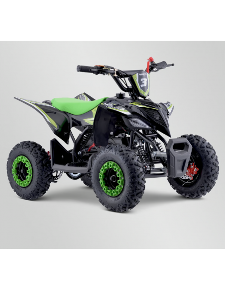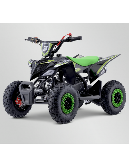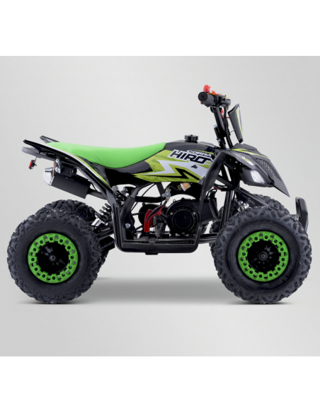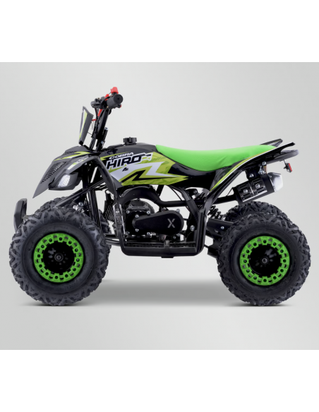 Pocket Quad APOLLO MOTORS modèle HIRO COBRA BW6 (Mini ATV) équipé de roue 6 Pouces. Ce quad grâce à de nombreux avantages séduira parents comme enfants ! MODELE HAUT DE GAMME DE CHEZ APOLLO MOTORS !!!! Importateur Francais distributeur RFZ / RXF avec un excellent SAV / dispo pièces ! Sa vitesse bridable dès 5 km/h et son coupe circuit type jet ski permettra de mettre pilote et parents en toute sécurité ! Ce quad permettra à l’enfant (dès 3/4 ans) de découvrir le sport mécanique fabuleux qu'est le quad, sans se ruiner et tout en gardant le meilleur rapport qualité prix du marché ! De plus avec ses nombreuses améliorations (voir photos), ce quad s'est fiabilisé avec le temps: lanceur aluminium renforcé, embrayage renforcé, biellettes renforcées, guidon aluminium, freins à disques avant (double) et arrière, chaine renforcée !!! Les + de la marque APOLLO MOTORS :- Train avant suspendu pour plus de confort et de solidité !- Colonne de direction monté sur bague (aucun jeu possible)- Biellettes de direction serties et inversées (beaucoup moins de jeu et d'usure dans le temps)- Fusée de train avant monté sur roulements (pas d'usure ni de jeu comparé à du plastique)- Nouveau guidon moins large et mieux adapté aux plus jeunes- Amortisseur avant / arrière réglable et moins dur ! - MOTEUR