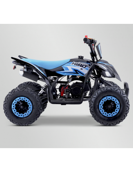 Pocket Quad APOLLO MOTORS modèle HIRO COBRA BW6 (Mini ATV) équipé de roue 6 Pouces. Ce quad grâce à de nombreux avantages séduira parents comme enfants ! MODELE HAUT DE GAMME DE CHEZ APOLLO MOTORS !!!! Importateur Francais distributeur RFZ / RXF avec un excellent SAV / dispo pièces ! Sa vitesse bridable dès 5 km/h et son coupe circuit type jet ski permettra de mettre pilote et parents en toute sécurité ! Ce quad permettra à l’enfant (dès 3/4 ans) de découvrir le sport mécanique fabuleux qu'est le quad, sans se ruiner et tout en gardant le meilleur rapport qualité prix du marché ! De plus avec ses nombreuses améliorations (voir photos), ce quad s'est fiabilisé avec le temps: lanceur aluminium renforcé, embrayage renforcé, biellettes renforcées, guidon aluminium, freins à disques avant (double) et arrière, chaine renforcée !!! Les + de la marque APOLLO MOTORS :- Train avant suspendu pour plus de confort et de solidité !- Colonne de direction monté sur bague (aucun jeu possible)- Biellettes de direction serties et inversées (beaucoup moins de jeu et d'usure dans le temps)- Fusée de train avant monté sur roulements (pas d'usure ni de jeu comparé à du plastique)- Nouveau guidon moins large et mieux adapté aux plus jeunes- Amortisseur avant / arrière réglable et moins dur ! - MOTEUR