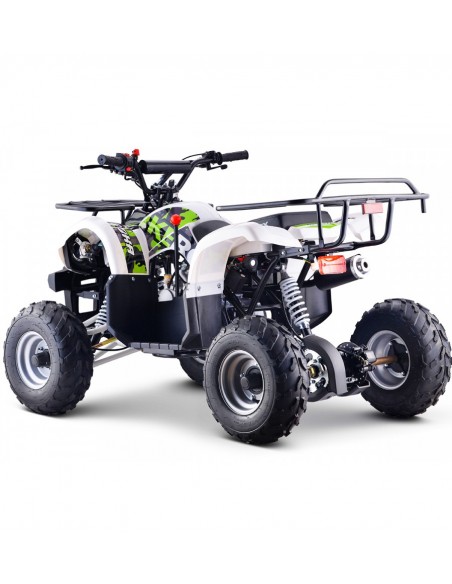 Ses portes bagages Avant et Arrière, ses grosses roues 7 pouces, son châssis XXL fait de ce quad une réplique des quads utilitaire et agricole !