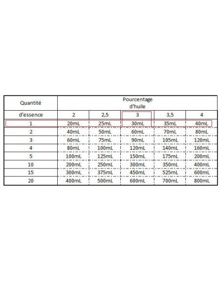 *** Voir le tableau (photo 2) pour réaliser votre mélange ! Pour une pocket privilégier de 3 à 3.5% d'huile !