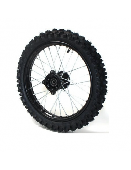 Roue 17 Pouces Avant Axe de 15 mm pour Dirt bike / Pit Bike (livré avec ses roulements, pneu arrière gros crampons 70/100-17 2.75-17 , chambre à air, fond de jante le tout monté) de 50 à 250cc avec moyeu en acier.Convient pour: